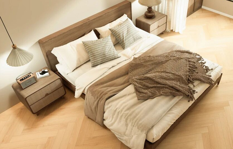 45°斜向拼接,似枝椏交錯,又若雁陣南飛,人字拼賦予靜態(tài)地面以流動的韻律,每一片精準(zhǔn)咬合,彼此承接,形成視覺上的綿延感,讓視線與心境,隨之舒展、向前